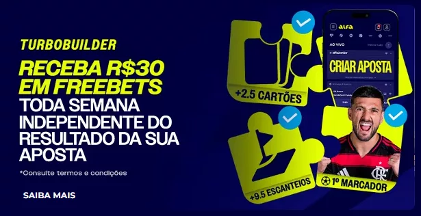 A única que vale realmente destaque é a Turbo Builder, que permite 30 reais em apostas grátis semanais para os usuários ativos da plataforma. Com isso, você consegue fazer uma bet sem risco, mas é importante ficar de olho nos termos e condições antes de participar.